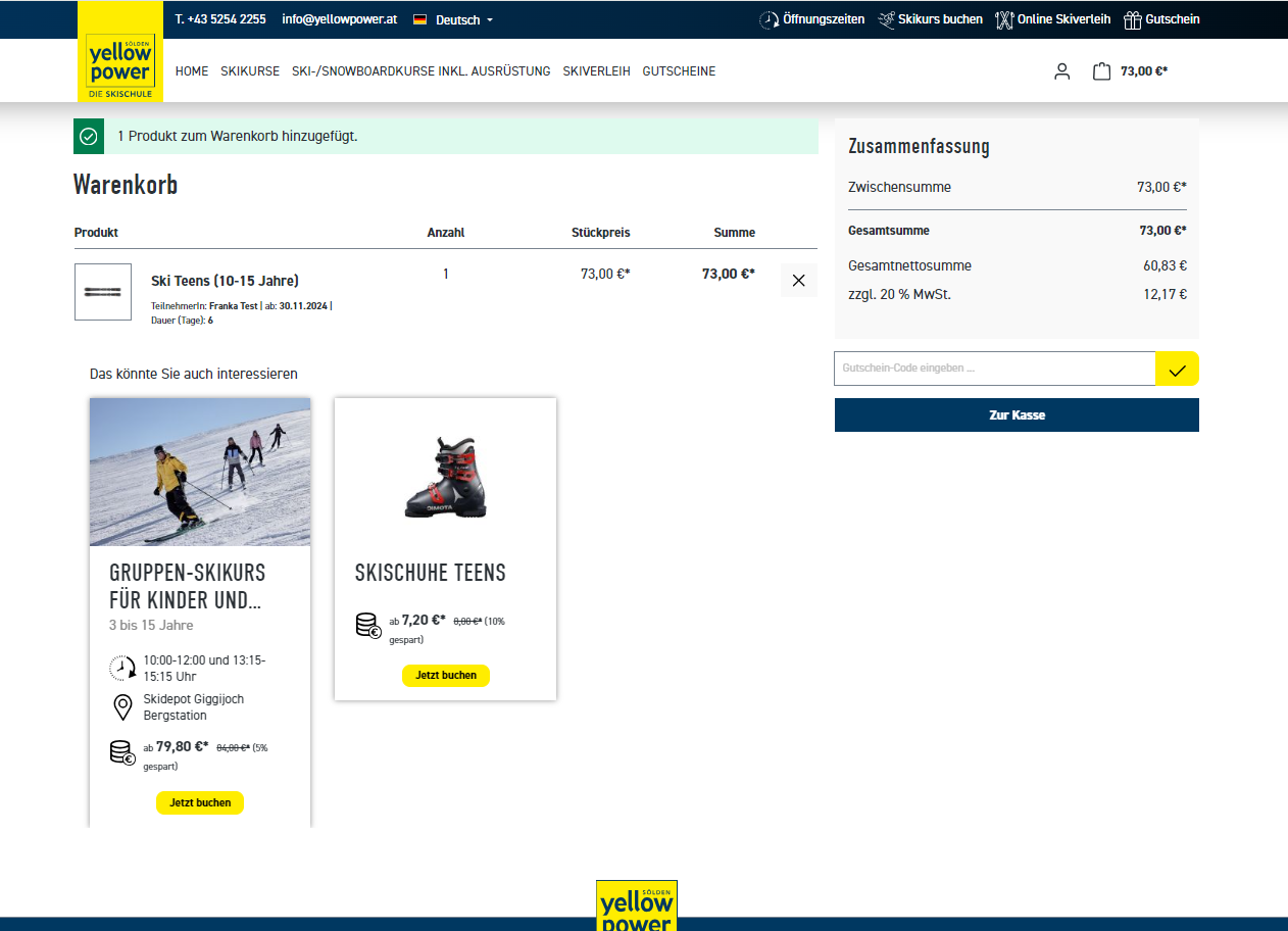 Der neue Online-Shop wurde bereits erfolgreich bei unseren SkischulAssistant Kunden Sölden Yellow Power und Skischule Brandnertal umgesetzt. Neu freuen wir uns über einen erfolgreichen Projektstart bei der Skischule Vacancia und Ski- und Bikeschule Öztal.